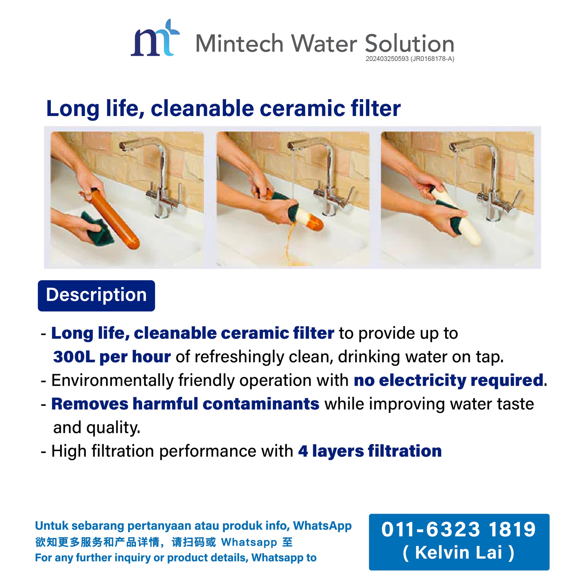 - Cleanable and reusable ceramic filter reduces waste and offers lasting value.