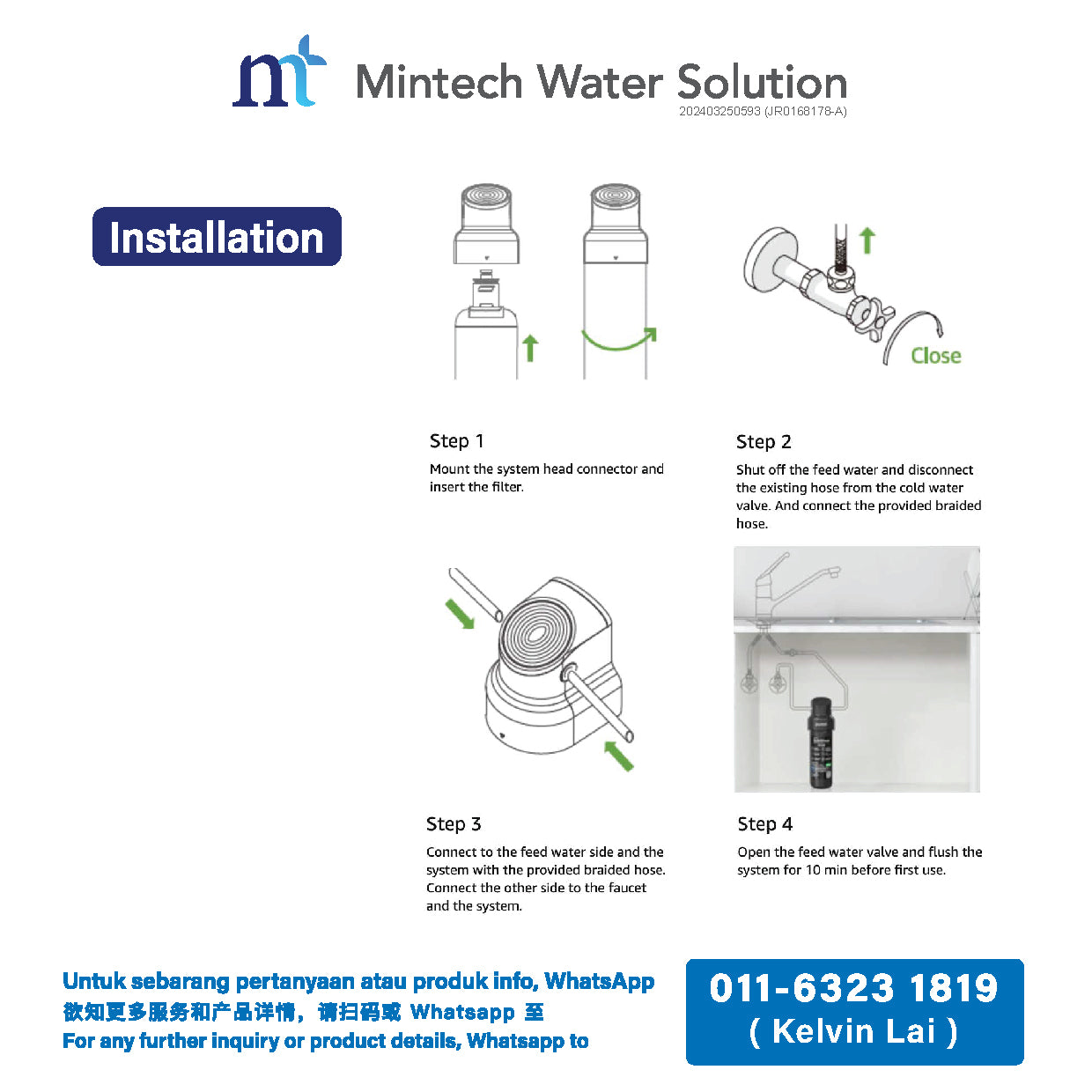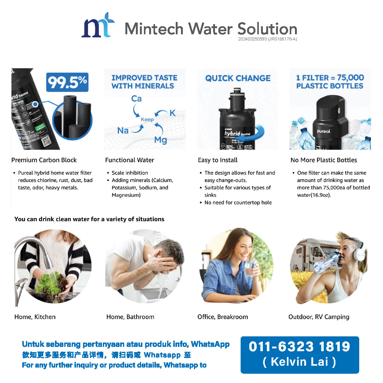 (01) Pureal Hybrid Home Residential Under Sink Water Filter System (17 inch - up to 75,600 Liters filtration)