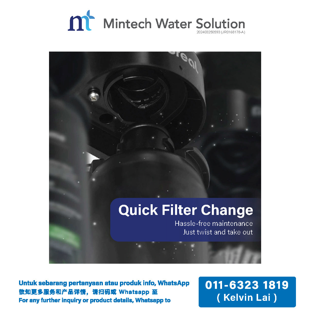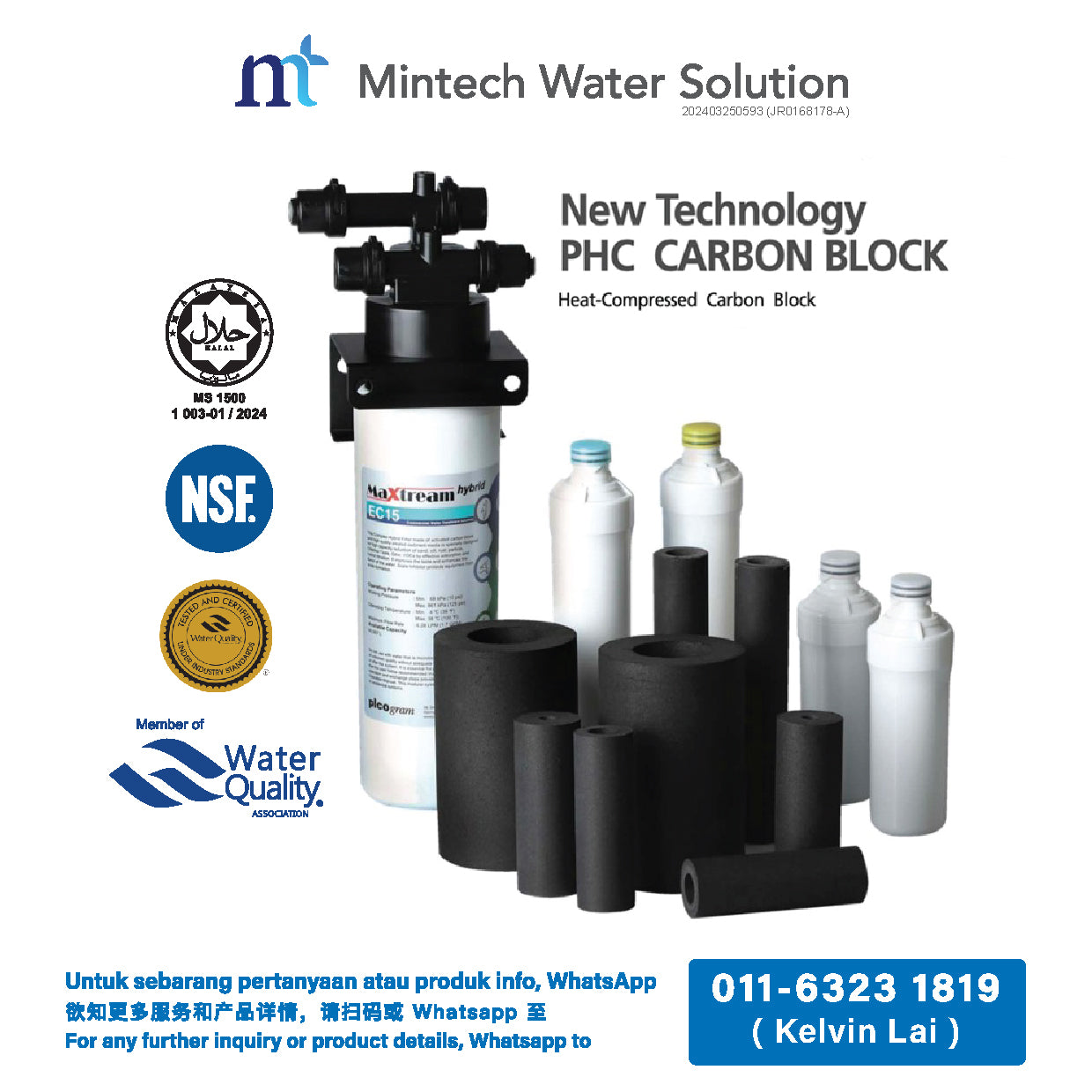 - Sediment + Elector positive membrane + Carbon block + Scale inhibitor