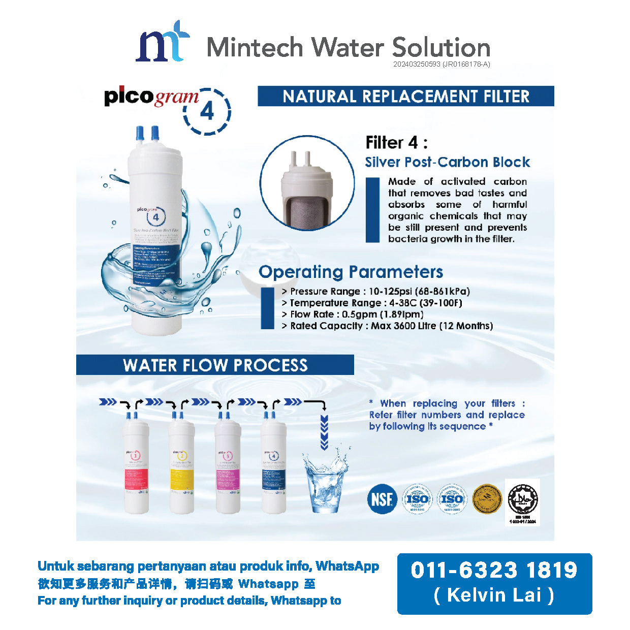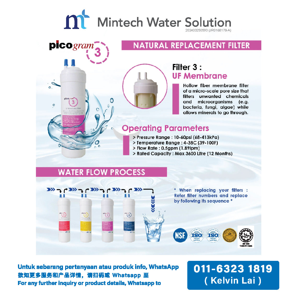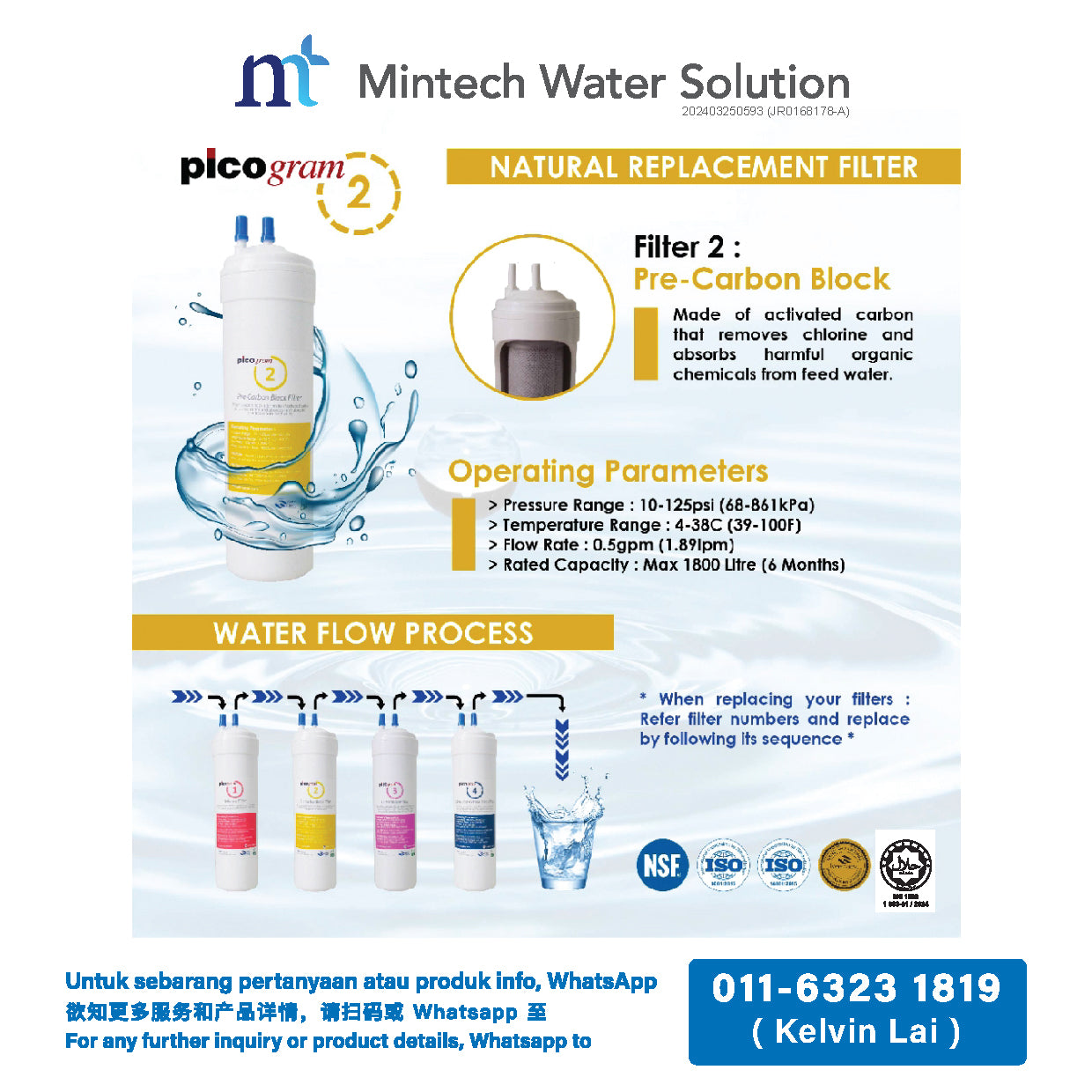 • Jakim Halal, NSF/ANSI 42/372 certified